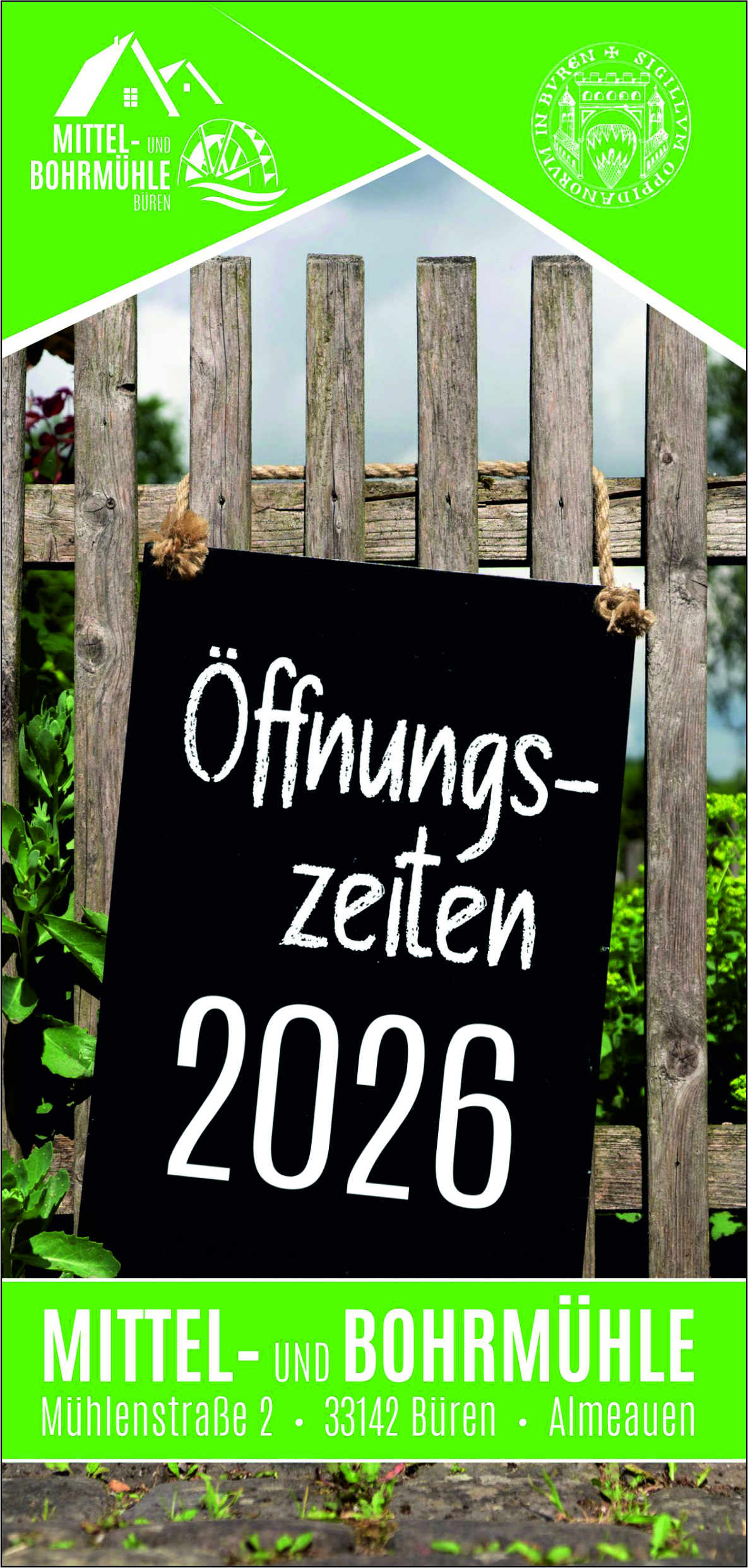 Die neuste Auflage unseres Öffnungszeitenflyers für die Mittel- und Bohrmühle sind da!!
